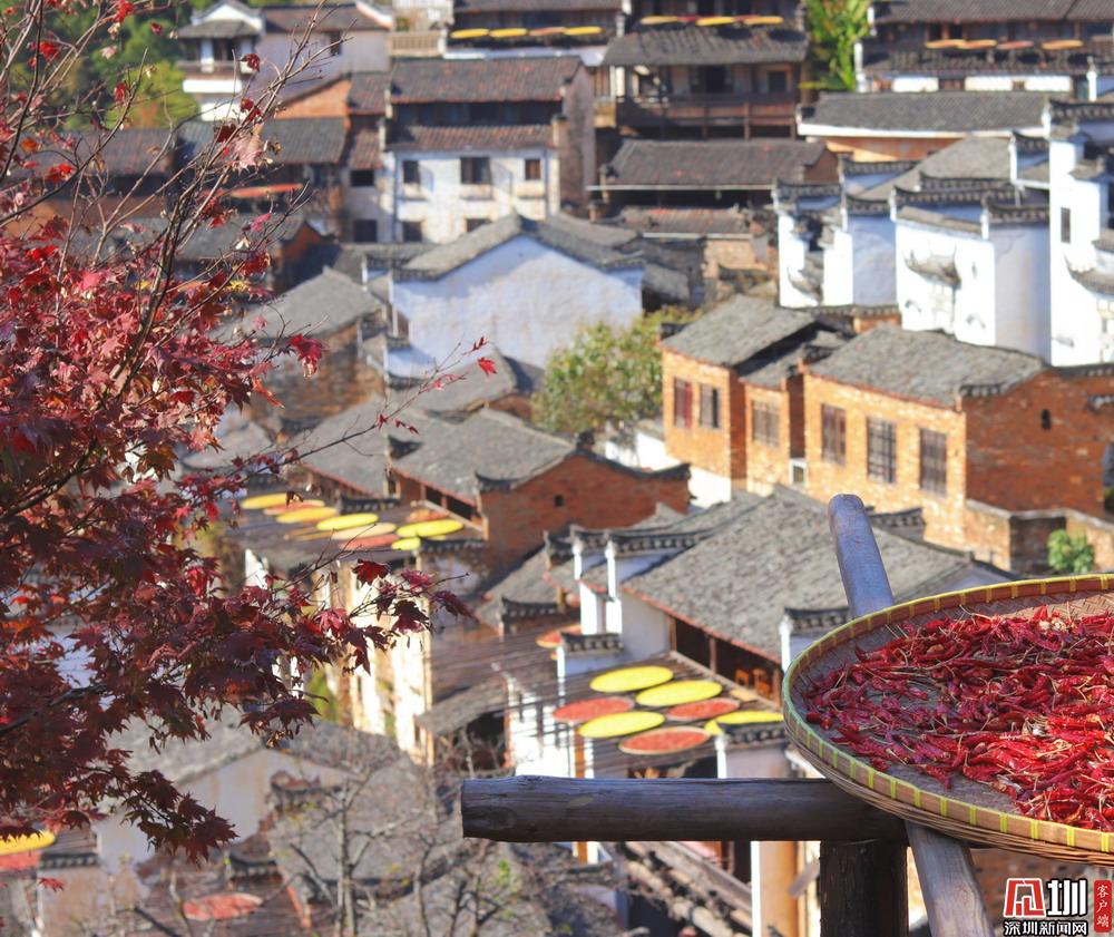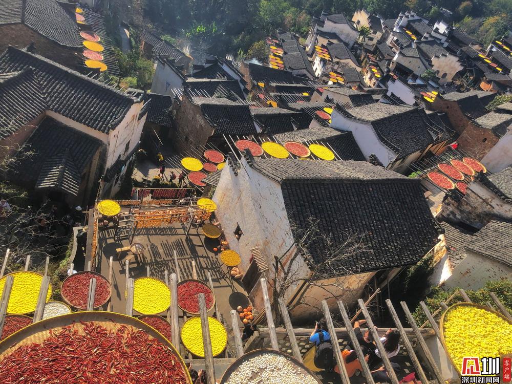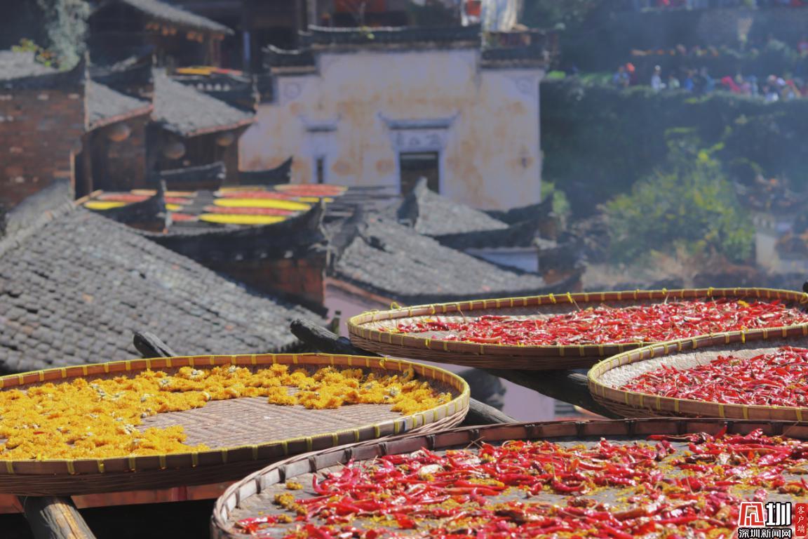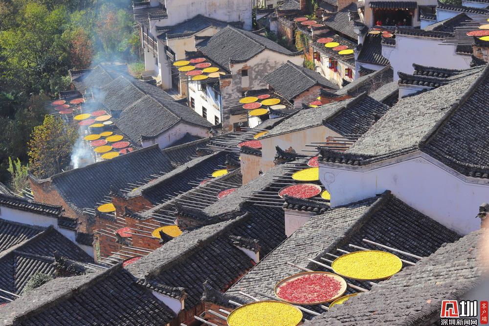 見(jiàn)圳客戶端·深圳新聞網(wǎng)2020年11月25日訊 江西婺源縣篁嶺村獨(dú)特的“曬秋”農(nóng)俗景觀。篁嶺村位于江西省上饒市婺源縣東北部,是著名的“曬秋”文化起源地,也是一座距今近六百年歷史的徽州古村。每當(dāng)日出山頭,數(shù)百棟徽派古民居在百米落差的坡面錯(cuò)落排布,整個(gè)山間村落徽式民居土磚外墻與曬架上五彩繽紛豐收成果組合,繪就出“曬秋”農(nóng)俗特色景觀。