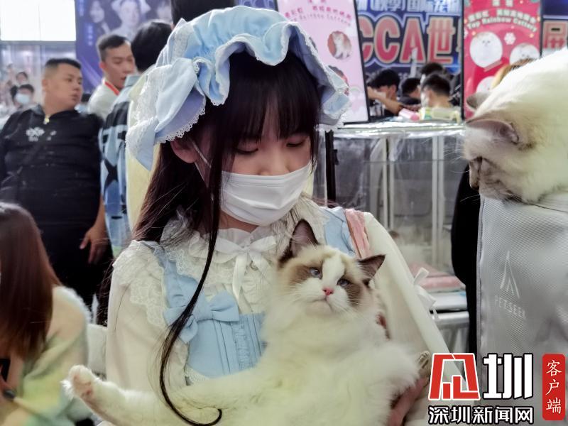 一位觀眾同時(shí)帶著兩只寵物貓逛展。