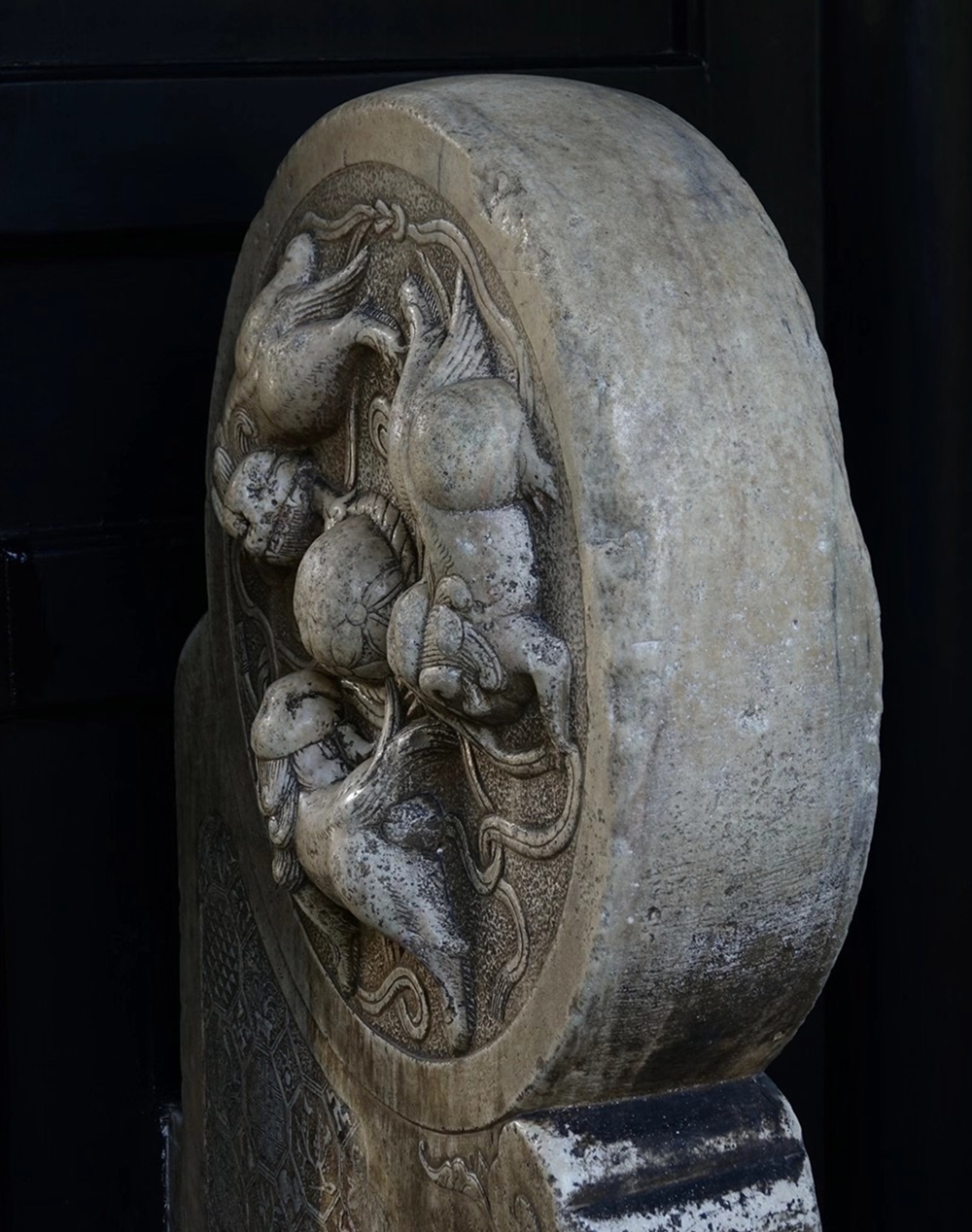 赫曦臺,在臺的左右內(nèi)壁上有丈余高的"福"、"壽"二字,臺的頂部雕飾有八卦圖、蝙蝠、壽字圖案。李仁奇 攝