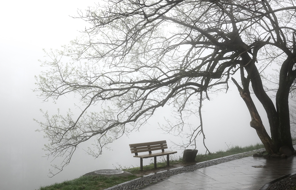 瀑布云在山頂形成,平鋪開(kāi)來(lái),順著山崖緩緩流下,延綿不絕。李仁奇 攝