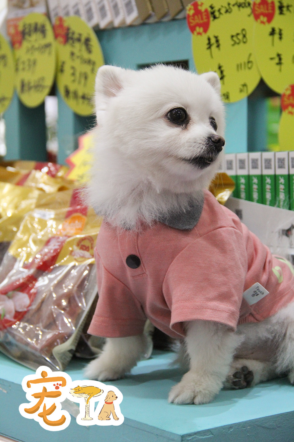 商品展臺上的店員狗狗。