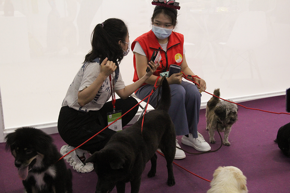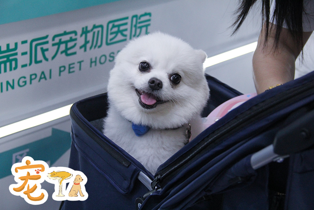 現(xiàn)場有很多主人使用推車帶著自家狗狗逛展。