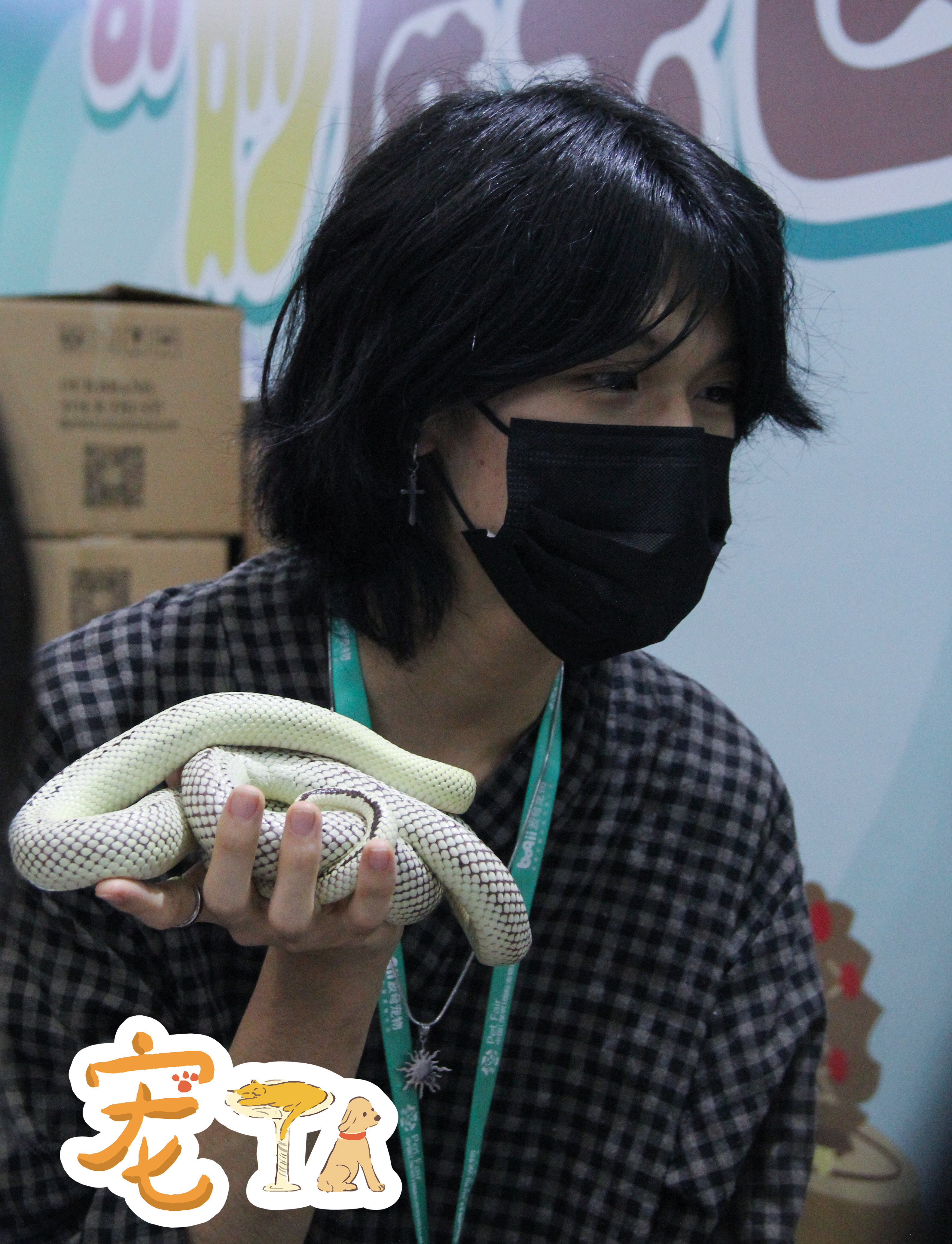 異寵展示區(qū)的工作人員在向觀眾介紹飼養(yǎng)蛇的注意事項。