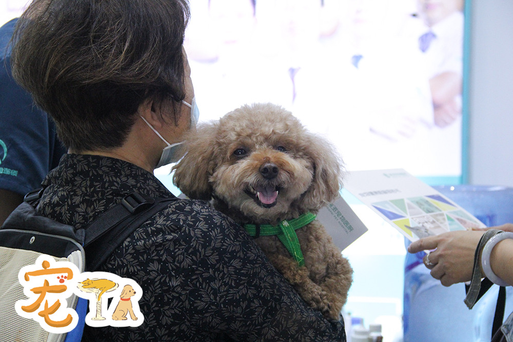 參展觀眾抱著自家“毛娃”逛展。
