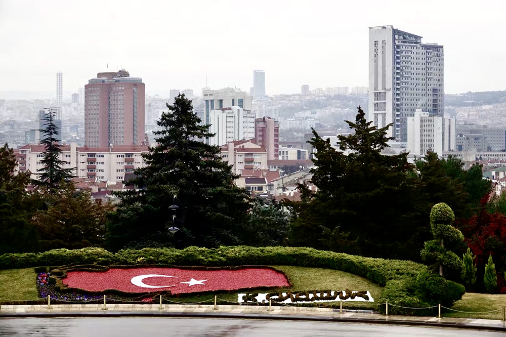 國父紀(jì)念館正門對面有個(gè)用獻(xiàn)花組成的土耳其國旗花壇。李仁奇 攝