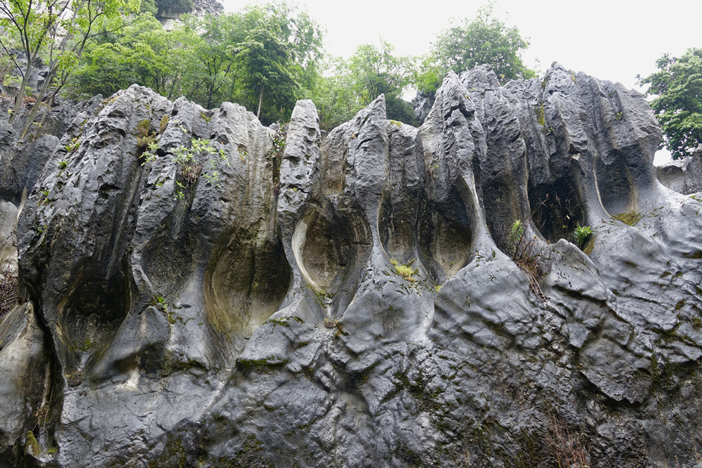 興文石海的地質(zhì)遺跡主要有:二疊紀(jì)地質(zhì)剖面、地表喀斯特地形、洞穴堆積物、瀑布、溶蝕峽谷、古生物化石、風(fēng)暴巖沉積等,其中最著名的是天坑,是中國(guó)發(fā)現(xiàn)和研究天坑最早的地方。李仁奇 攝