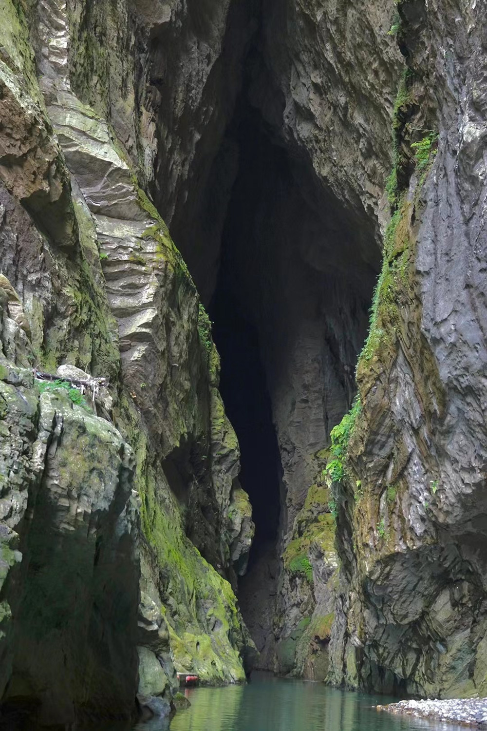 “暗河”指的是這條河流穿行溶洞的部分。里面漆黑一片,伸手不見(jiàn)五指,但中段有“蒼天有眼”(實(shí)為天生橋)奇觀,末端有形似“天下第一刀”的天空,令人稱奇。李仁奇 攝