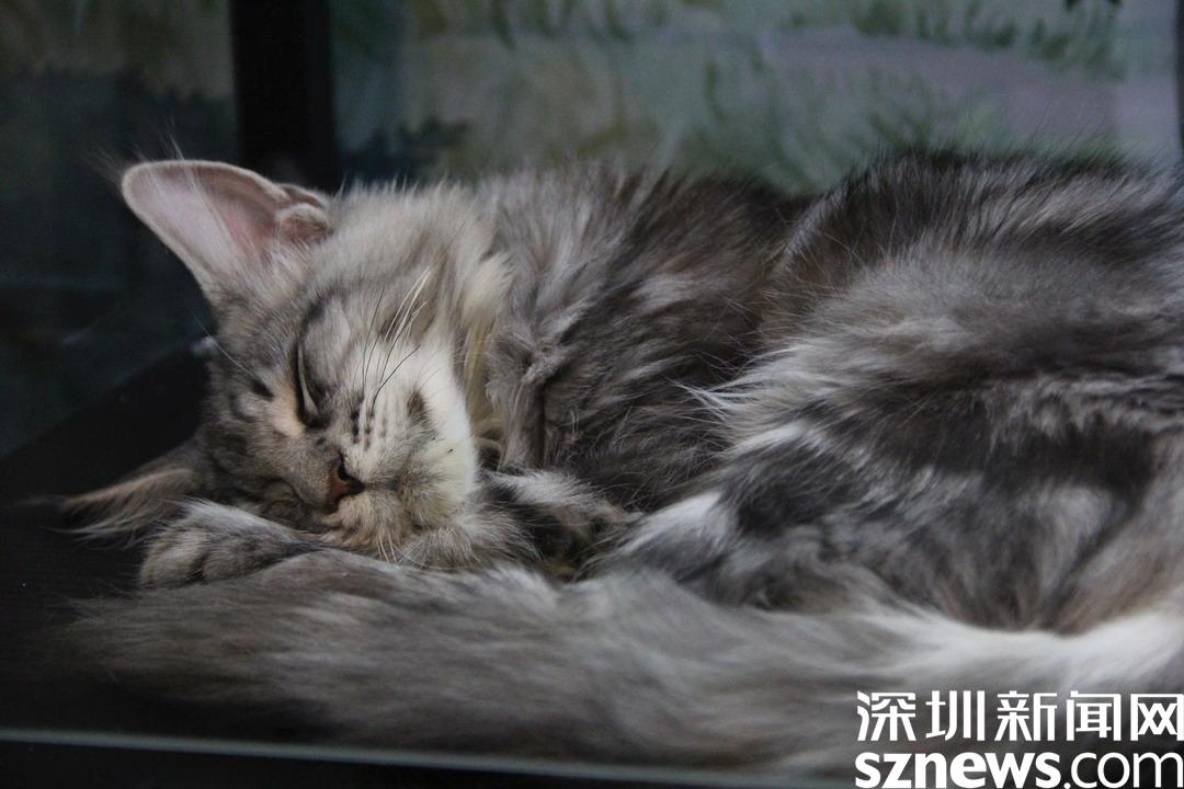 長(zhǎng)相硬朗帥氣的緬因“大佬”,在熟睡的時(shí)候也是一只“小甜心”。