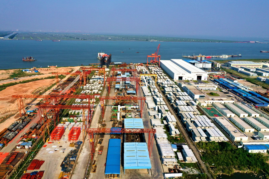 坪鹽通道建設(shè)過(guò)程中,鹽港東立交裝配式施工圖。(資料圖)