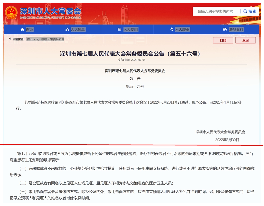 讀特客戶端·深圳新聞網(wǎng)2022年7月8日訊(記者 張玲 翁任瑩)7月5日,北京市盈科(深圳)律師事務所律師杜芹到深圳公證處,為自己做了一份生前預囑。這份生前預囑,有可能成為深圳首份公證的生前預囑。6月23日,深圳市人大常委會表決通過《深圳經(jīng)濟特區(qū)醫(yī)療條例》(以下簡稱《條例》),該《條例》將于2023年1月1日起施行。深圳通過立法率先建立的“生前預囑制度”可謂一石激起千層浪,引發(fā)全國網(wǎng)友和各方持續(xù)關注。