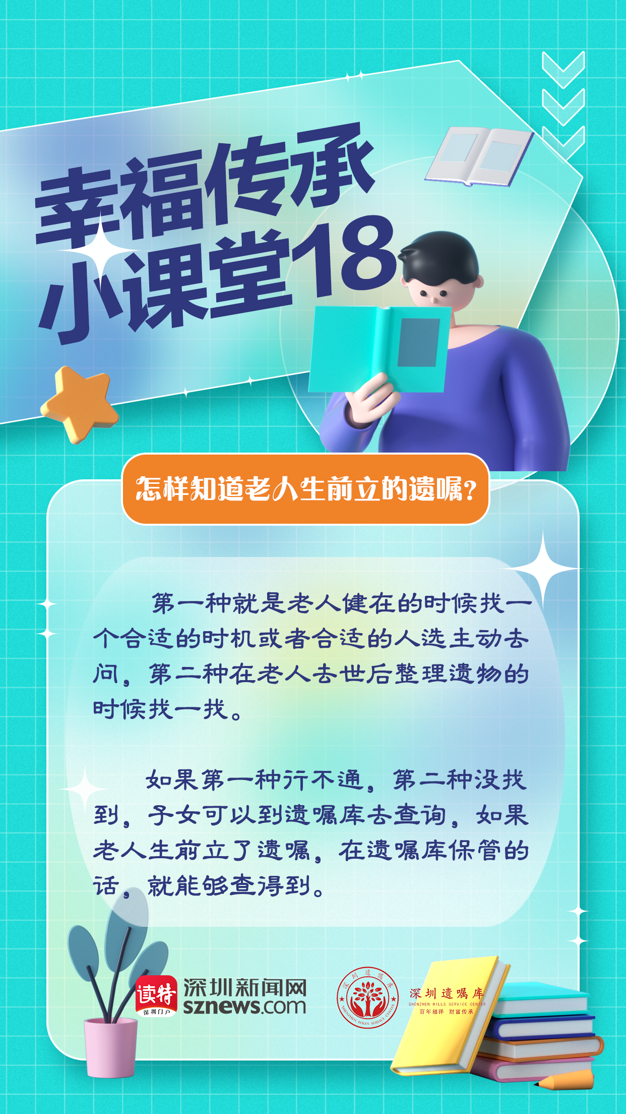 讀特客戶(hù)端·深圳新聞網(wǎng)2022年10月31日訊(記者 翁任瑩 張玲 金洪竹)老人生前立了遺囑,有什么辦法了解呢?一般來(lái)說(shuō),常見(jiàn)的有兩種辦法:老人健在的時(shí)候,找個(gè)合適的時(shí)機(jī)或者合適的人選主動(dòng)去問(wèn)。但如果覺(jué)得傷感情或者老人忌諱的話(huà),就別提這個(gè)話(huà)題。這種辦法不適合所有的家庭。