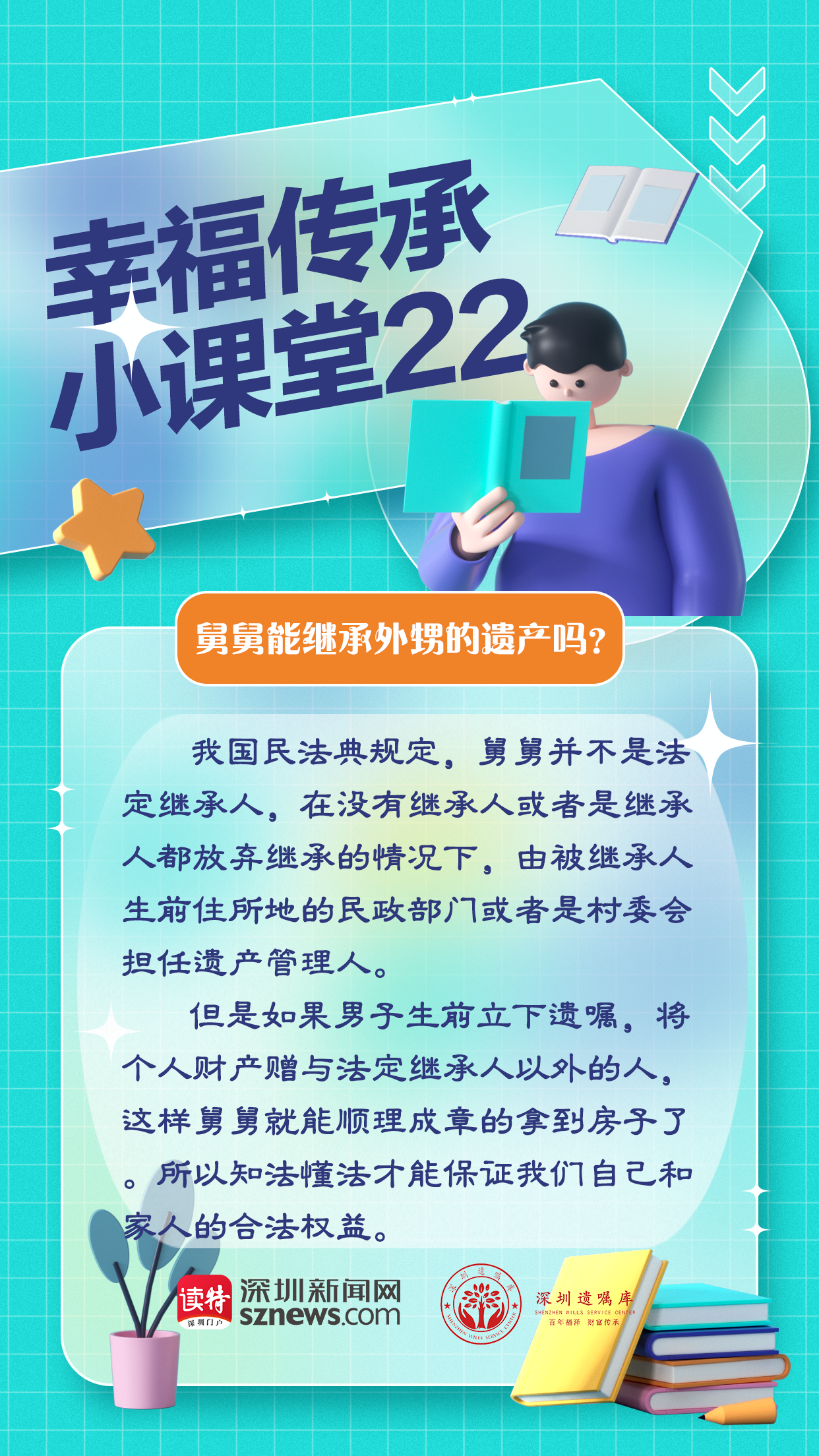 讀特客戶端·深圳新聞網(wǎng)2022年11月28日訊(記者 張玲 翁任瑩 金洪竹)深圳一位36歲的男子去世留下了一套房子,舅舅以為能繼承這套房子,還繼續(xù)幫外甥還房貸,可法院卻判決舅舅沒有資格繼承,讓民政局成為了遺產(chǎn)管理人,這是為什么呢?