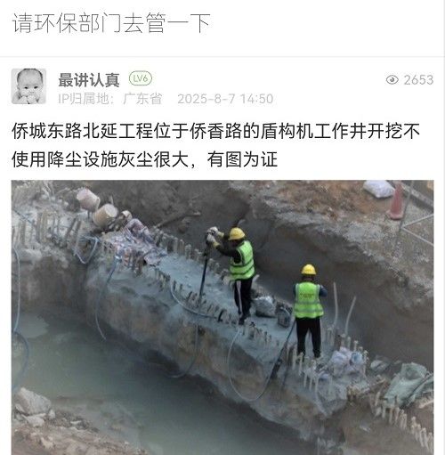 網(wǎng)友,您好!經(jīng)核實(shí),該處為僑城東路北延通道工程盾構(gòu)工作井施工現(xiàn)場(chǎng),現(xiàn)場(chǎng)圍擋已安裝自動(dòng)噴淋系統(tǒng),并在主要施工區(qū)域設(shè)置霧炮機(jī)。目前現(xiàn)場(chǎng)正在開展鑿除地連墻混凝土施工,因作業(yè)點(diǎn)較分散,我們已安排施工單位增加霧炮機(jī),確保易揚(yáng)塵面濕法連續(xù)作業(yè)。后續(xù)將安排專人專責(zé),加強(qiáng)工地現(xiàn)場(chǎng)常態(tài)化巡視巡檢,做好防塵防護(hù)措施。感謝您的關(guān)注和理解!