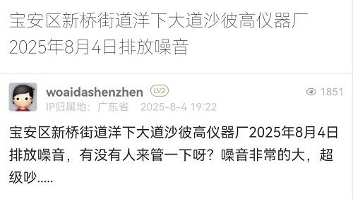 4. 帖文《寶安區(qū)新橋街道洋下大道沙彼高儀器廠2025年8月4日排放噪音》