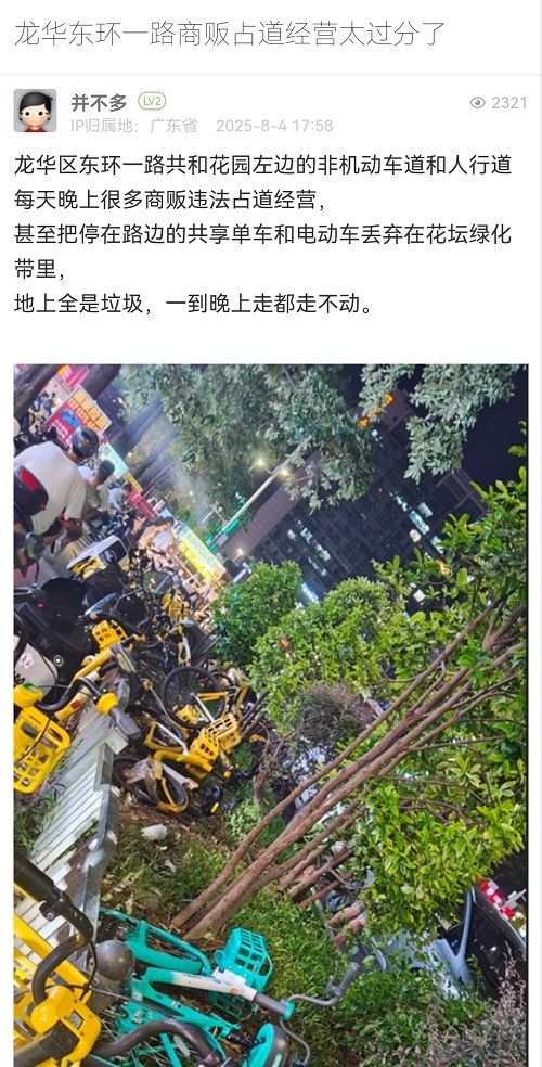 3. 帖文《龍華東環(huán)一路商販占道經(jīng)營太過分了》