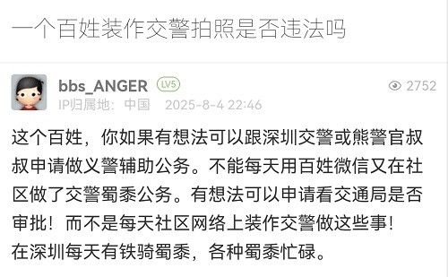 5. 帖文《一個(gè)百姓裝作交警拍照是否違法嗎》