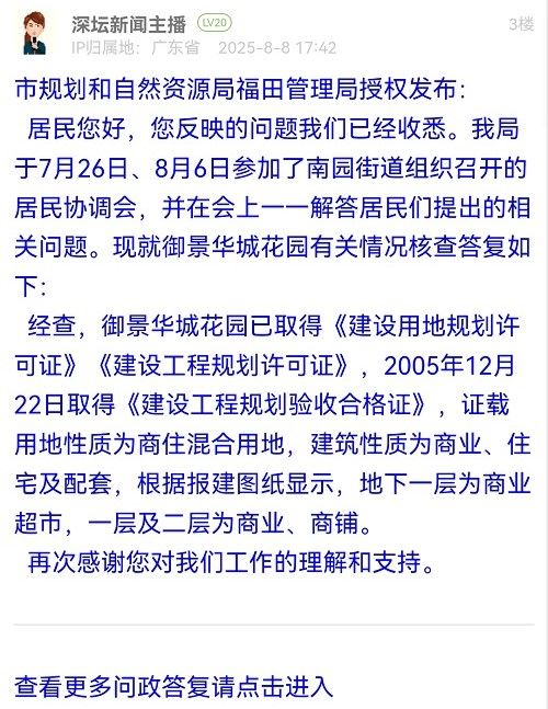 (一)關(guān)于“社區(qū)、街道辦很早就知道此消息,但業(yè)主和住戶一直被蒙在鼓里”:經(jīng)核實(shí),京基御景華城商業(yè)廣場(chǎng)原權(quán)利人深圳市京基房地產(chǎn)股份有限公司(下稱“京基公司”)于今年7月初將產(chǎn)權(quán)轉(zhuǎn)讓給深圳市龍勝電子市場(chǎng)有限公司(下稱“龍勝公司”),龍勝公司計(jì)劃將該商業(yè)廣場(chǎng)升級(jí)改造為二手手機(jī)市場(chǎng),并在相關(guān)視頻賬號(hào)上公開宣傳。相關(guān)經(jīng)營主體出售物業(yè)產(chǎn)權(quán),在程序上無需街道社區(qū)審批同意或到街道社區(qū)備案,街道直至7月中旬才得知該商業(yè)廣場(chǎng)的產(chǎn)權(quán)轉(zhuǎn)讓事宜。