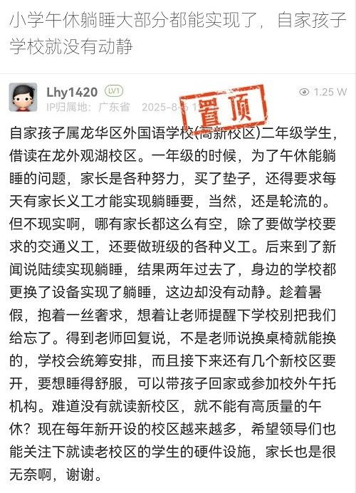 12. 帖文《小學(xué)午休躺睡大部分都能實(shí)現(xiàn)了,自家孩子學(xué)校就沒有動(dòng)靜》