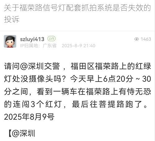 29. 帖文《關(guān)于福榮路信號(hào)燈配套抓拍系統(tǒng)是否失效的投訴》