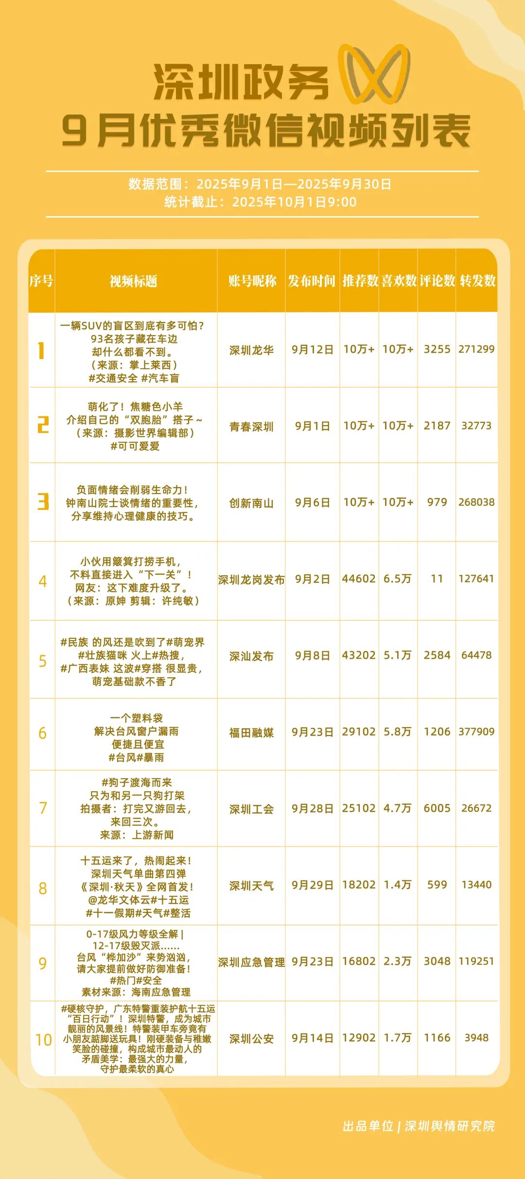 四、9月深圳優(yōu)秀政務(wù)新媒體賬號(hào)