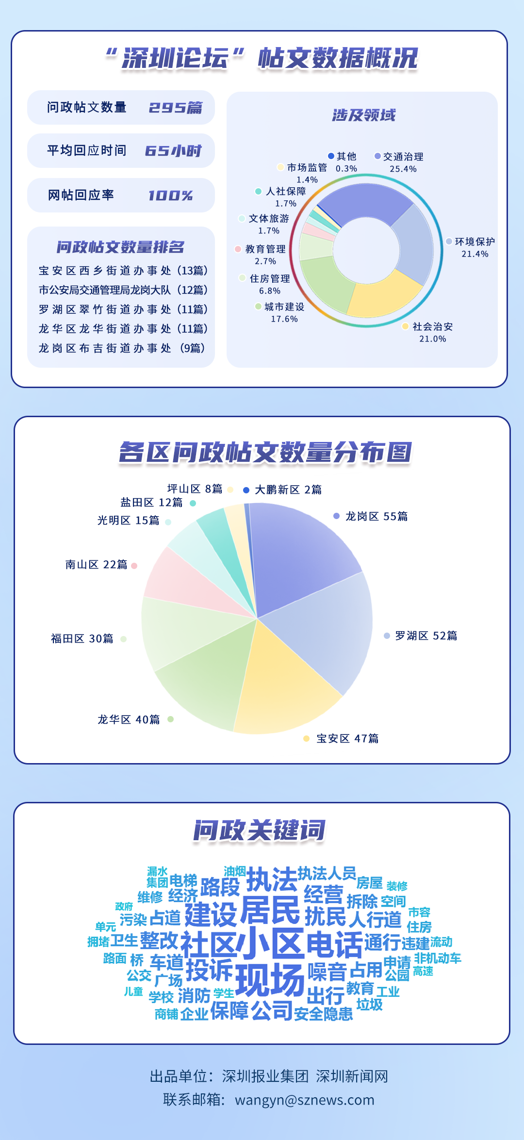 為探尋媒體如何精準賦能基層治理現(xiàn)代化的“深圳路徑”,深圳報業(yè)集團正式掛牌成立“問政深圳”工作室,旨在進一步推動網(wǎng)絡(luò)問政工作的高效開展。為確保相關(guān)工作更加契合實際需求,自上期起,深圳報業(yè)集團深圳新聞網(wǎng)按照“最快速度辦結(jié)”的總體要求,將原有月度榜單創(chuàng)新升級為“問政深圳紅黑榜”,并對評分體系進行了細致優(yōu)化。該榜單從答政量、回應(yīng)率、響應(yīng)時效及解決成效等多個維度,對深圳各級黨政機關(guān)及公共企事業(yè)單位進行答政實效評議,力求打造政府與媒體攜手共進、創(chuàng)新基層治理現(xiàn)代化的新樣板,從而更好地回應(yīng)人民群眾對美好生活的熱切期盼。