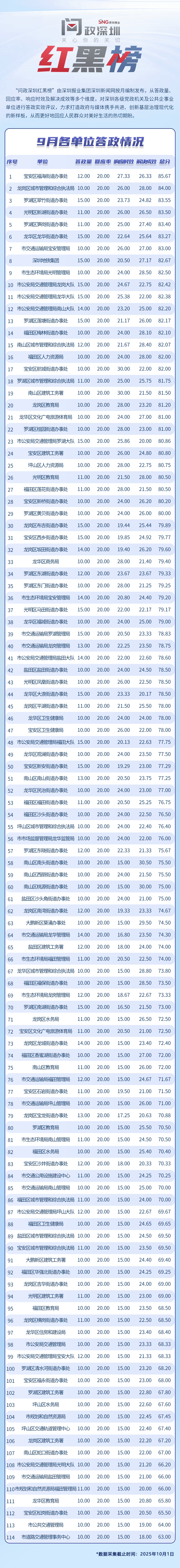 “問政深圳紅黑榜”具有科學、合理、完備的綜合評價體系,能夠綜合評估深圳各級黨政機關(guān)和公共企事業(yè)單位的答政情況。