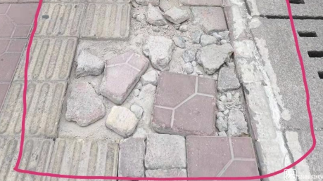 羅湖區(qū)金稻田路人行道有破損,官方承諾盡快修復